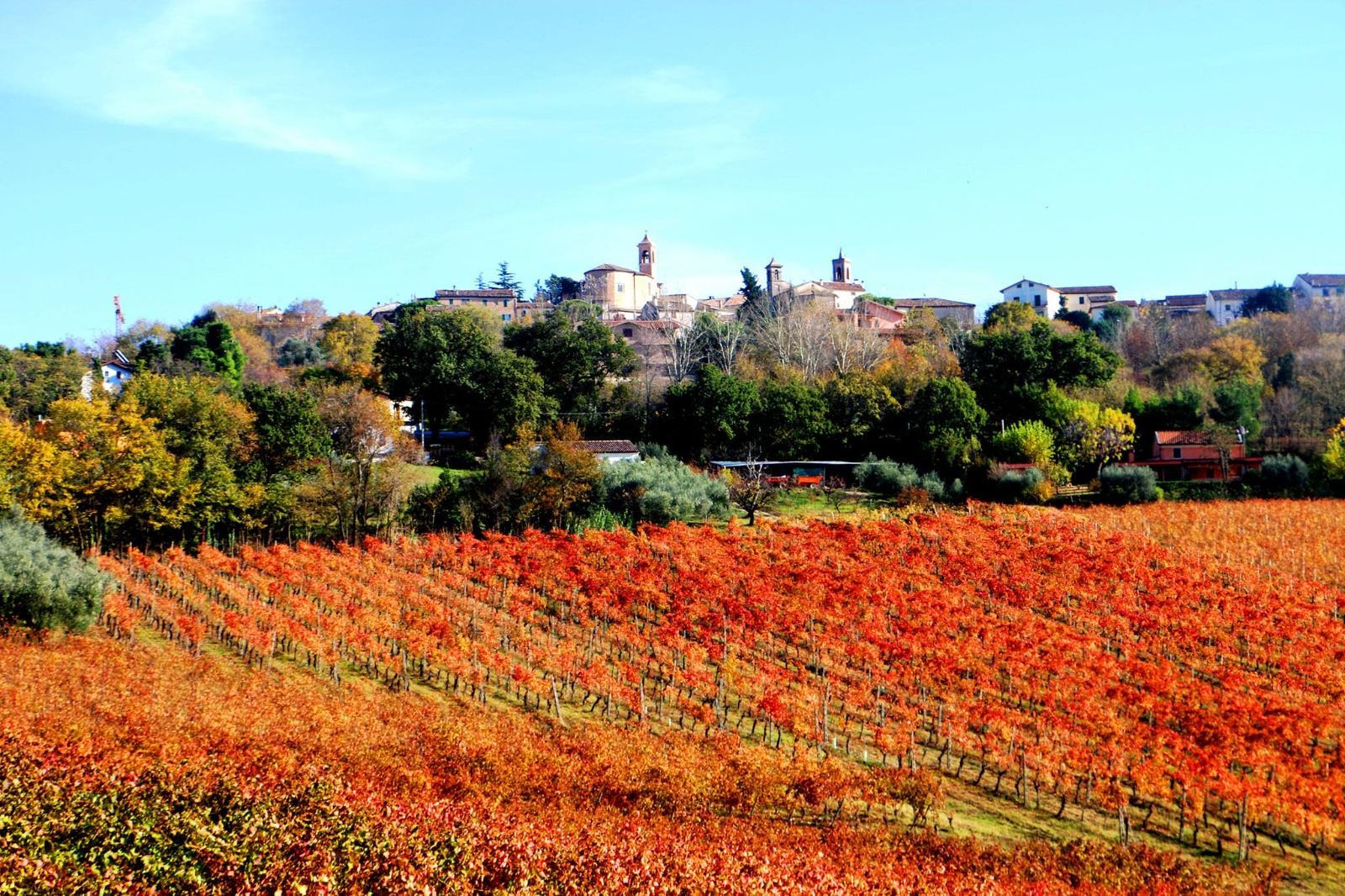 Morro d’Alba, affascinante borgo inserito tra i “Borghi più belli d’Italia” dal 2019, sorge a 199 metri sul livello del mare, tra le valli dei fiumi Misa ed Esino, nel cuore delle colline marchigiane. Il toponimo “Morro” deriva probabilmente dal termine murr, che significa altura o roccia, mentre l’appellativo “Alba” fu aggiunto dopo il 1862. Le più antiche tracce di presenza umana risalgono all’epoca paleolitica e neolitica, e nella frazione di Sant’Amico fu rinvenuto nel 1894 il celebre Medaglione di Teodorico, unica effige a conio del re goto, oggi conservata al Gabinetto Numismatico di Roma.